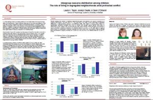 Taylor, L.K., & Dautel, J., O’Driscoll, D. (2017, March). Intergroup resource distribution among children: The role of living in segregated neighborhoods amid protracted conflict. Poster presented at the Society for Research on Child Development (SRCD) Biannual Conference, Austin, Texas, US.