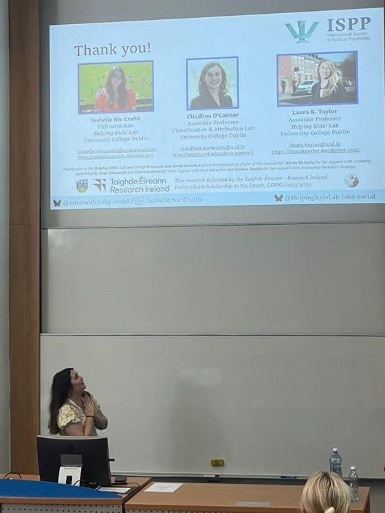 Nic Craith, I., O’Connor, C., & Taylor, L. K. (2025, July 6). Development of national identity among youth: A systematic review of youth national identity and intergroup outcomes in an age of immigration.Paper presented at the International Society of Political Psychology (ISPP) Annual Meeting, Prague, Czech Republic.